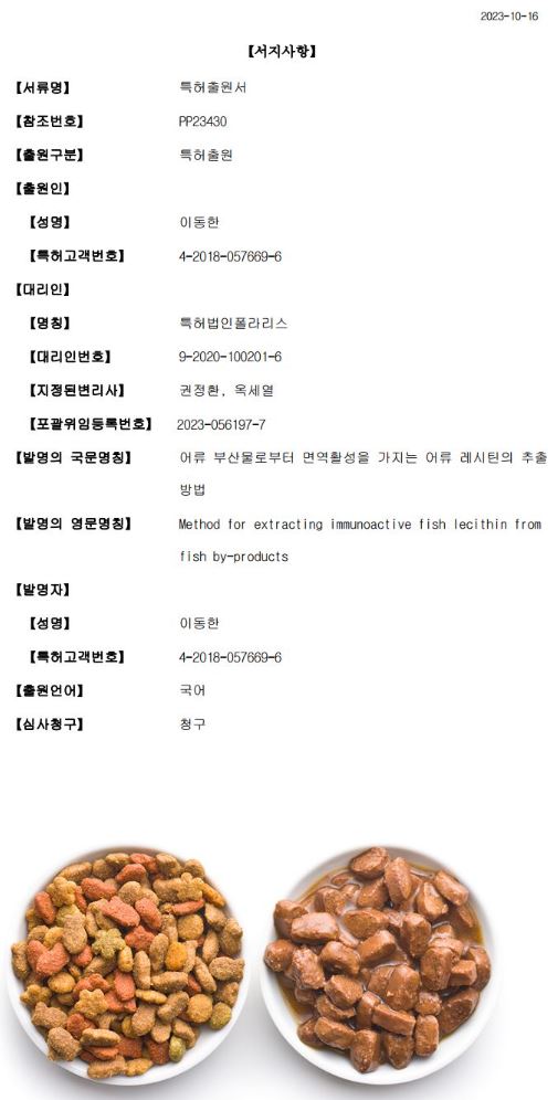 2024年研究開発中のドライフード開発のため、国産サーモンレシチン抽出方法関連の特許出願を終え、2024年10月発売に向けて拍車をかけています