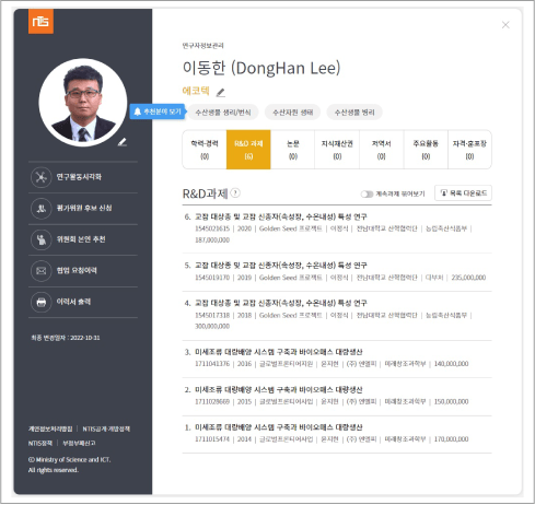 研究者登记证 - Lee Dong-han代表